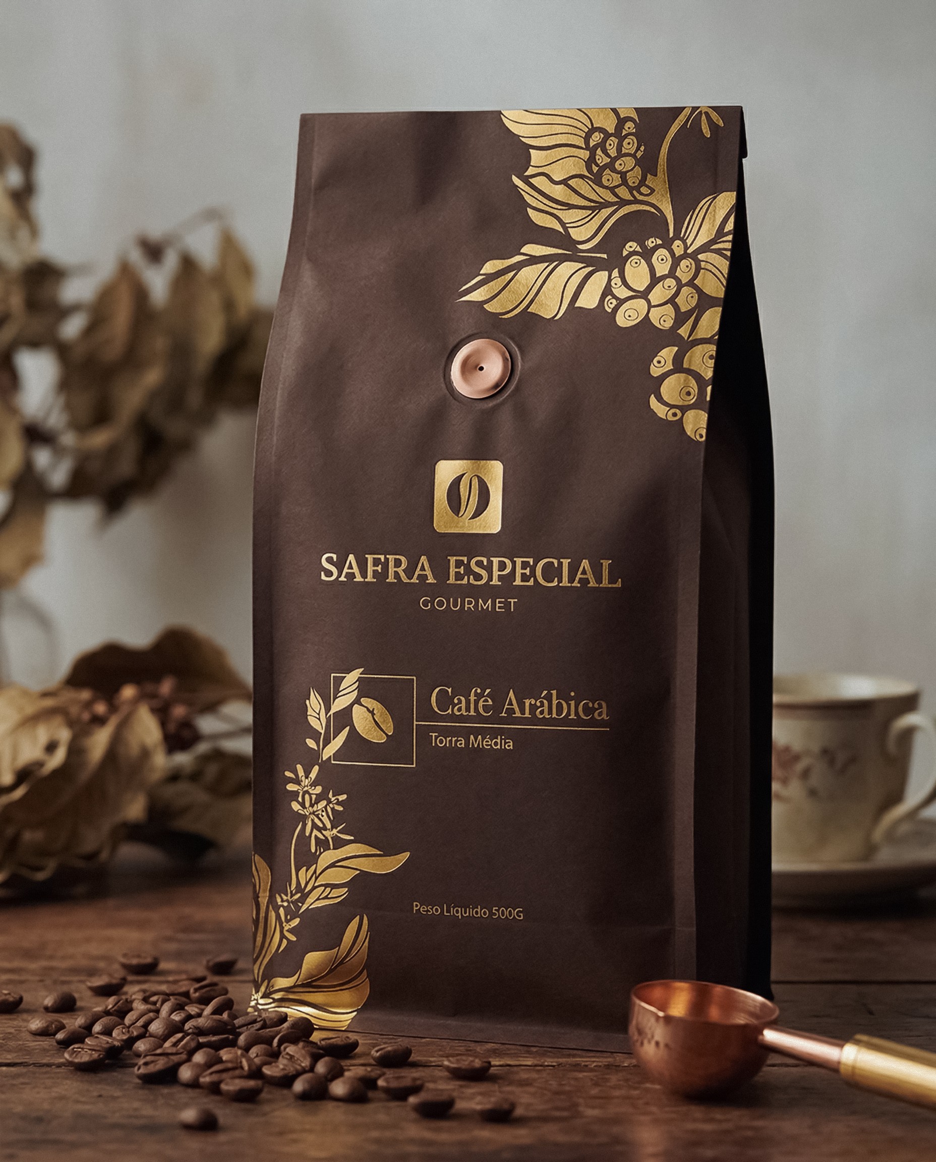A direção de arte da Safra Especial foi construída para traduzir visualmente o universo sensorial do café especial.A linguagem visual busca equilibrar sofisticação, naturalidade e autenticidade, valorizando texturas, contrastes e composições minimalistas.